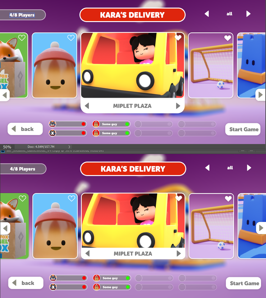 Here are some of the tests for the mini-game picker. Testing out some different layouts.